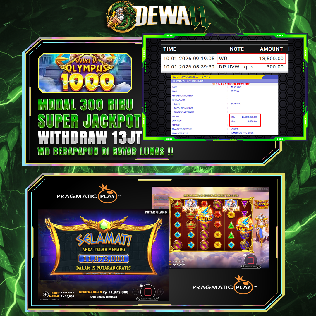 DEWA11 menghadirkan game jackpot vip yang di lengkapi fitur khusus new member hanya dengan modal deposit 300k dijamin akan withdraw 13,5 juta malam ini.